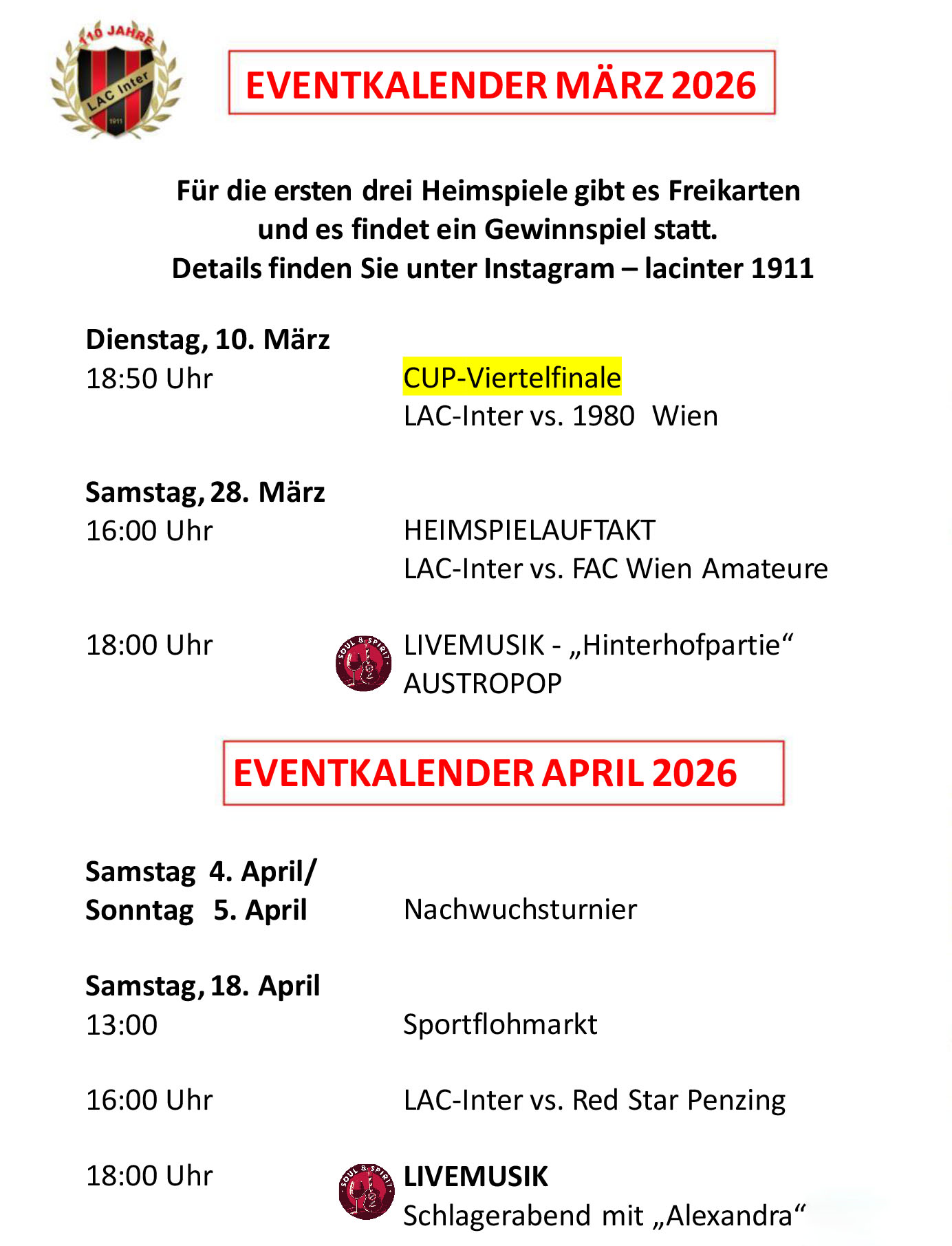 Anmeldung bei Herrn Mag. Dieter Frenzel, LAC-Inter Nachwuchsleiter unter dieter.frenzel@gmx.at oder Tel. 069910979997.